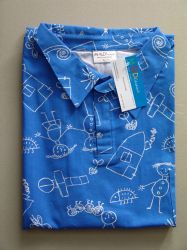 L 5613 Halena, bílé postavičky na modré, krátký rukáv, košilový střih, tuzemský materiál, v sadě s čepicí 750,- Kč